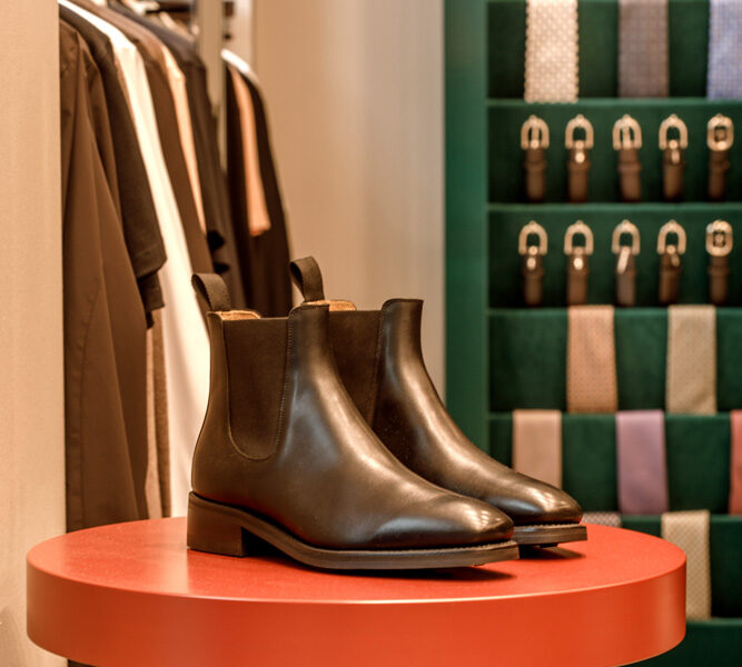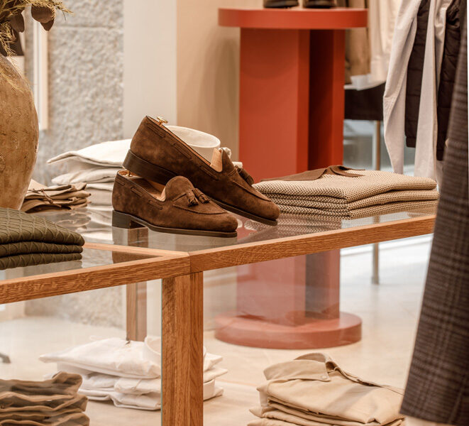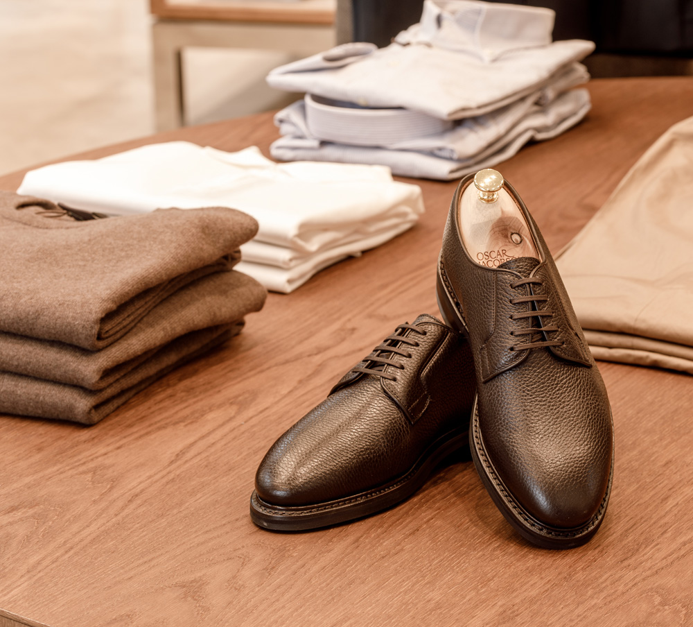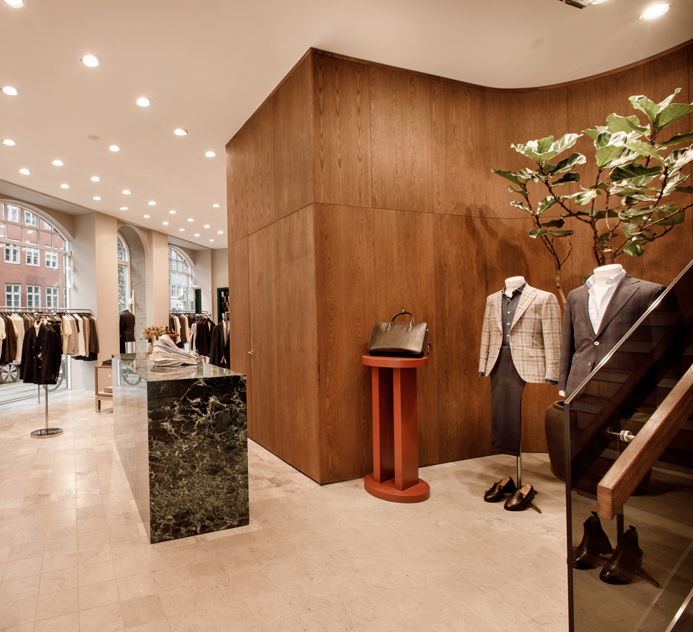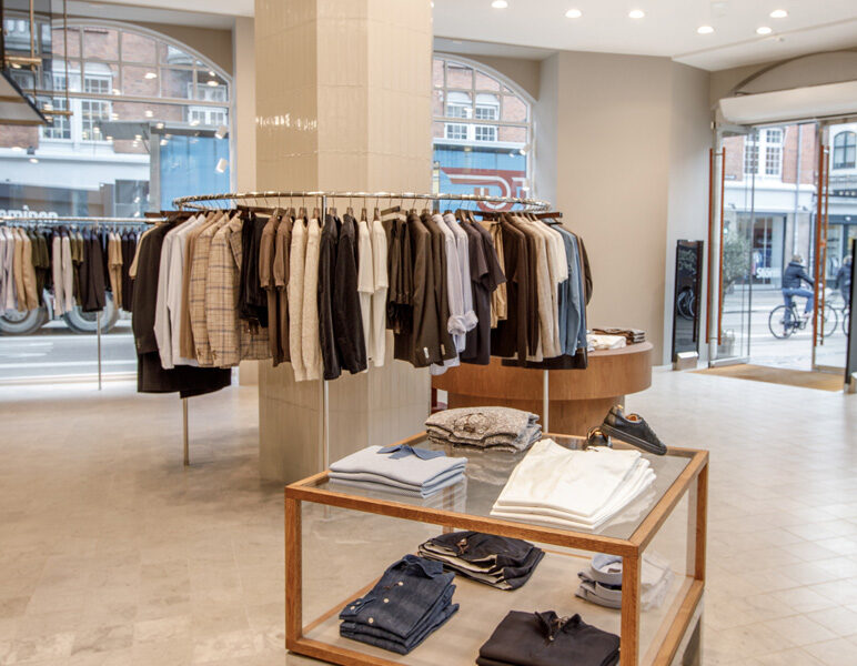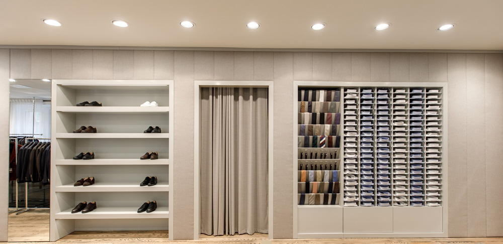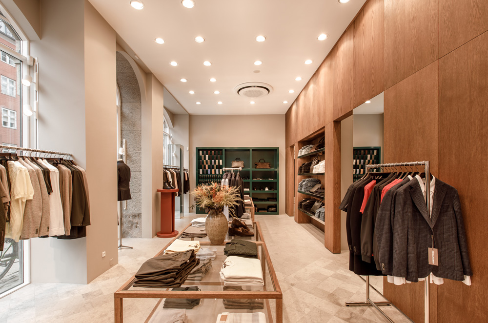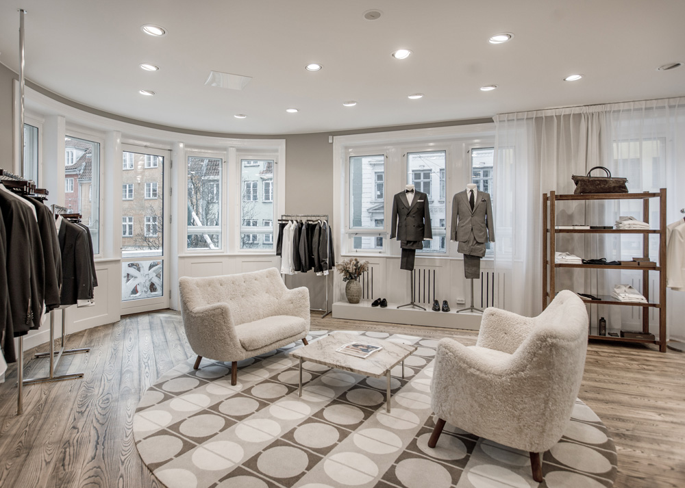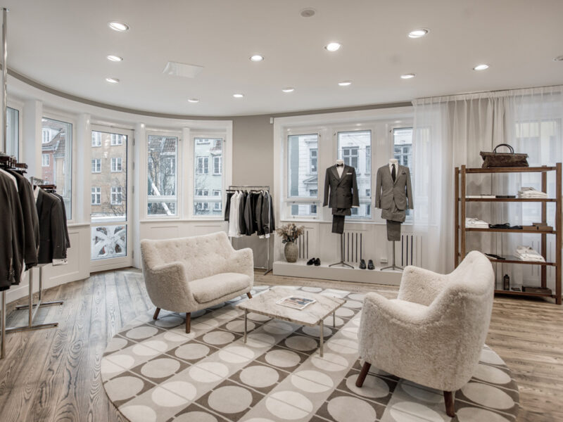 Ta en närmare titt på den nya Oscar Jacobson-butiken på Christian IX:s Gade 1, 1111 Köpenhamn, Danmark. En vacker butik levererad av Norco Interior som erbjuder Oscar Jacobson-tjänsten Custom Made. Med Oscar Jacobsons Custom Made-tjänst designar du din egen unika jacka, byxa, kostym, väst, smoking eller kappa. Du väljer modell, passform, tyg och detaljer som ger dig ett unikt plagg och en personlig stil.